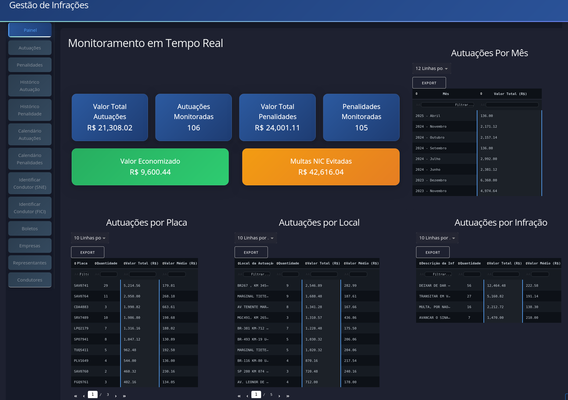 O Portal e-Frotas se conecta diretamente com o Senatran e ainda possui parceria com órgãos governamentais como DETRAN-MG e outros. Após sua autorização com uso do certificado digital, você será notificado por nós de todas as autuações, penalidades, e NICs da sua frota. Também é possível identificar condutores e baixar o CRLV do seu veículo dentro da plataforma.